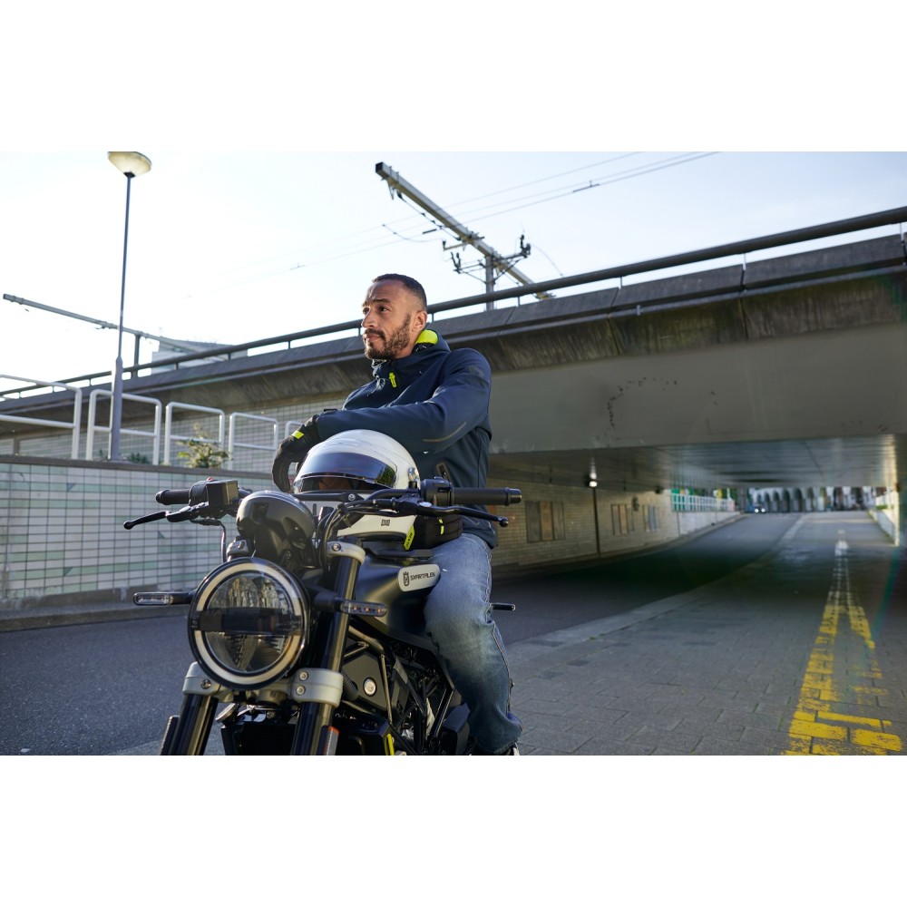 Tο Traffic H2O softshell της Rev'it είναι σχεδιασμένο για τους νεότερους αναβάτες που αναζητούν ενα αδιάβροχο μοντέρνο urban τζάκετ για τις καθημερνές τους μετακινήσεις στην πολη, με προστασίες υψηλών προδιαγραφών ώστε να παραμένουν προστατευμένοι οδηγώντας το σκούτερ ή τη μοτοσικλέτα τους. Είναι πλήρως αδιάβροχο και διαθέτει κουκούλα και ενσωματωμένη θερμική επένδυση.