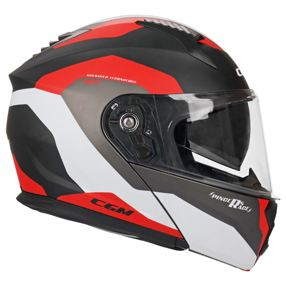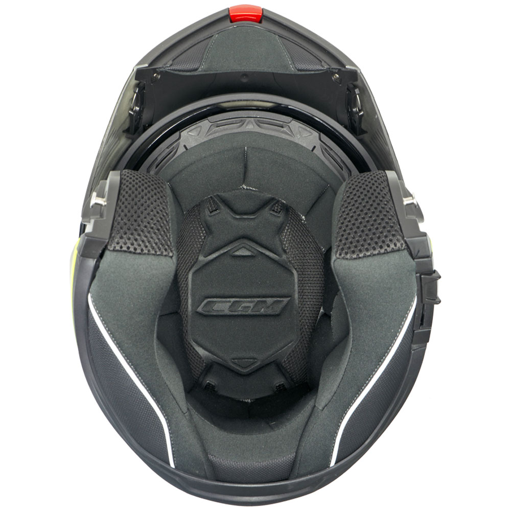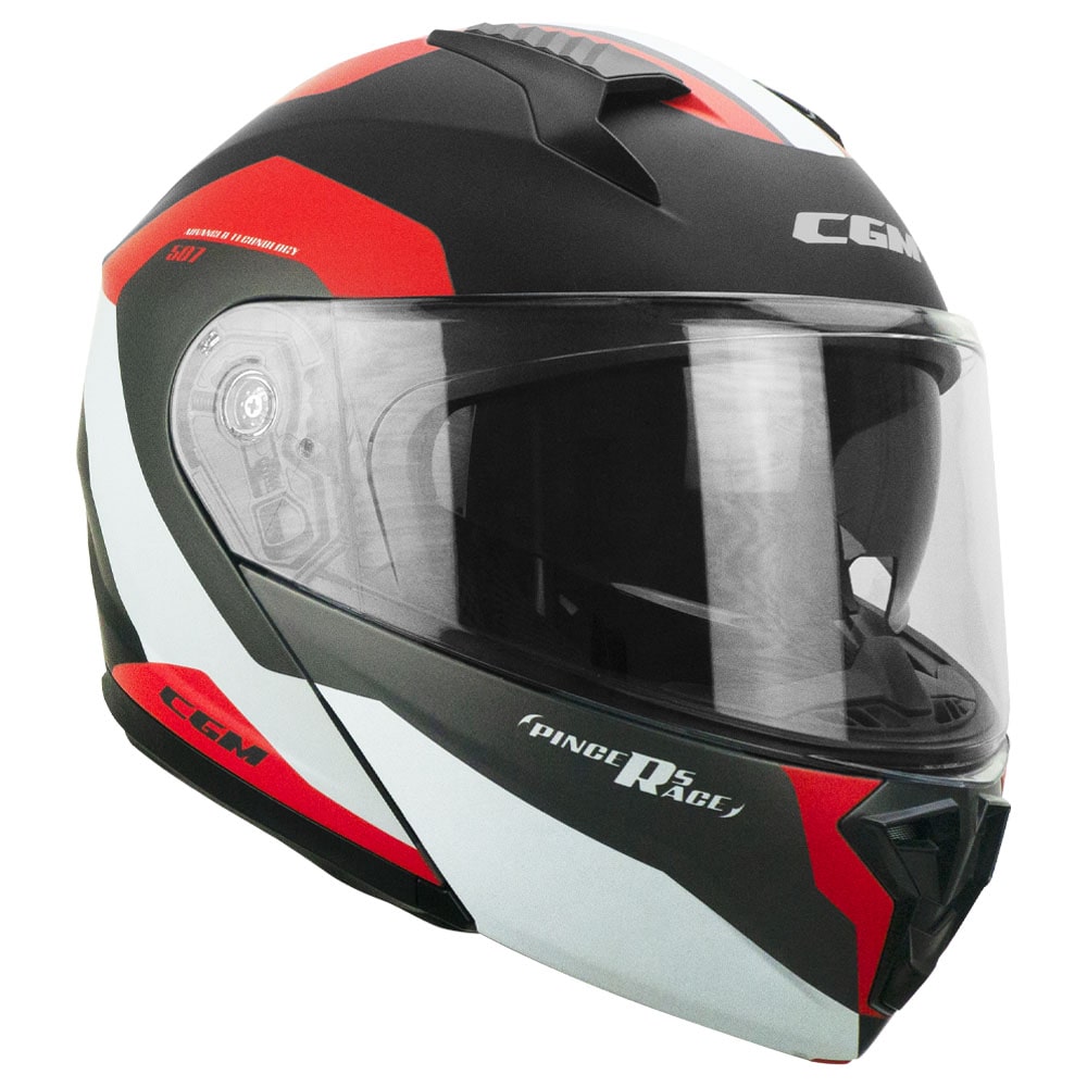 Ανοιγόμενο κράνος της Ιταλικης CGM , κατασκευασμένο απο τα πιο συγχρονα υλικα ωστε να παρεχει υψηλα επιπεδα ασφαλειας και ανεσης στον αναβατη. Ειναι εξοπλισμενο με προηγμενο συστημα αερισμου ωστε να εξασφαλιζεται η καλυτερη δυνατη κυκλοφορια του αερα στο εσωτερικο του κρανους και διαθετει αφαιρουμενη εσωτερικη επενδυση με αντιβακτηριδιακες ιδιοτητες. Η εξωτερικη ζελατινα του κρανους ειναι ειδικα σχεδιασμενη για να παρεχει μεγαλο οπτικο πεδιο και η εσωτερικη πτυσσομενη φιμε ζελατινα για να μας προστατευει απο την ηλιακη ακτινοβολια.