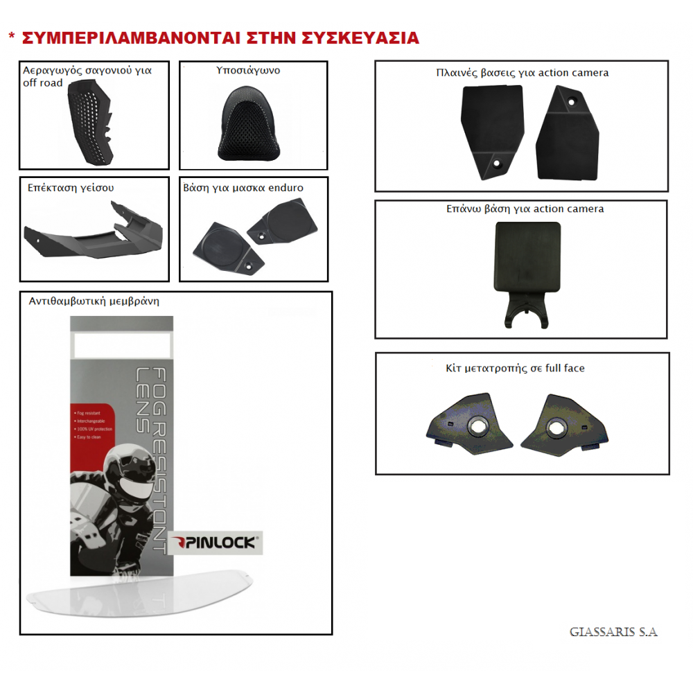 Κιτ το οποίο μετατρέπει το κράνος σε fullface όταν αφαιρείται το γείσο (συμπεριλαμβάνεται στην συσκευασία)