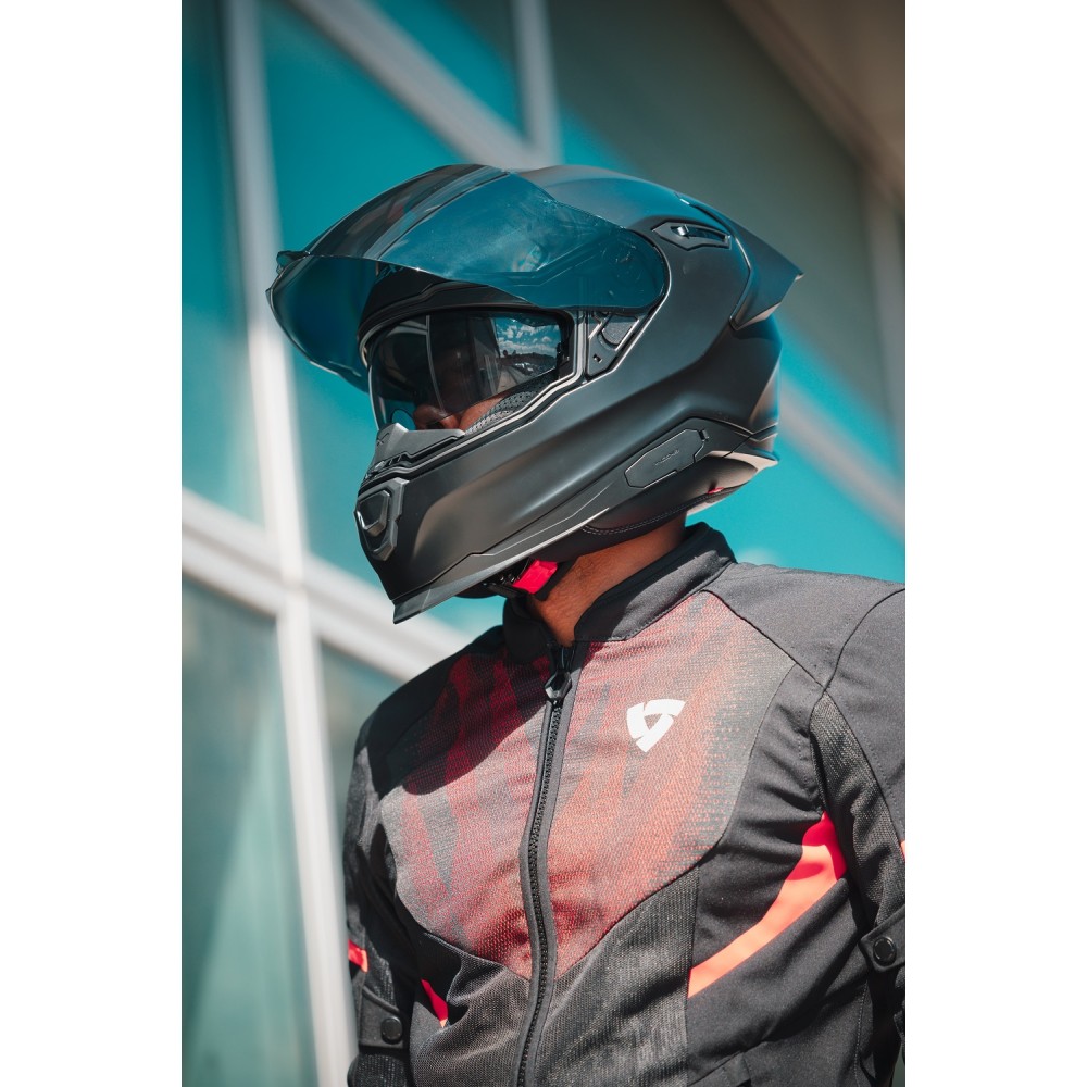 . Διαθέτει εξωτερική διάφανη αντιχαρακτικη ζελατίνα, ειδικά κατασκευασμένη ώστε να παρέχει πολύ μεγάλο οπτικό πεδίο για τον αναβάτη και εσωτερική πτυσσόμενη φιμε αντηλιακή ζελατίνα για προστασία απο τις υπεριώδης ακτίνες UV. Επιπλέον είναι εξοπλισμένο με εξελιγμένο σύστημα αερισμού ώστε να εξασφαλίζεται η καλύτερη δυνατή διαπνοή για τον αναβάτη και διαθέτει αφαιρούμενα εσωτερικά ώστε να μπορούν να πλένονται. Eχει προδιάγραφες ECE22-06.
