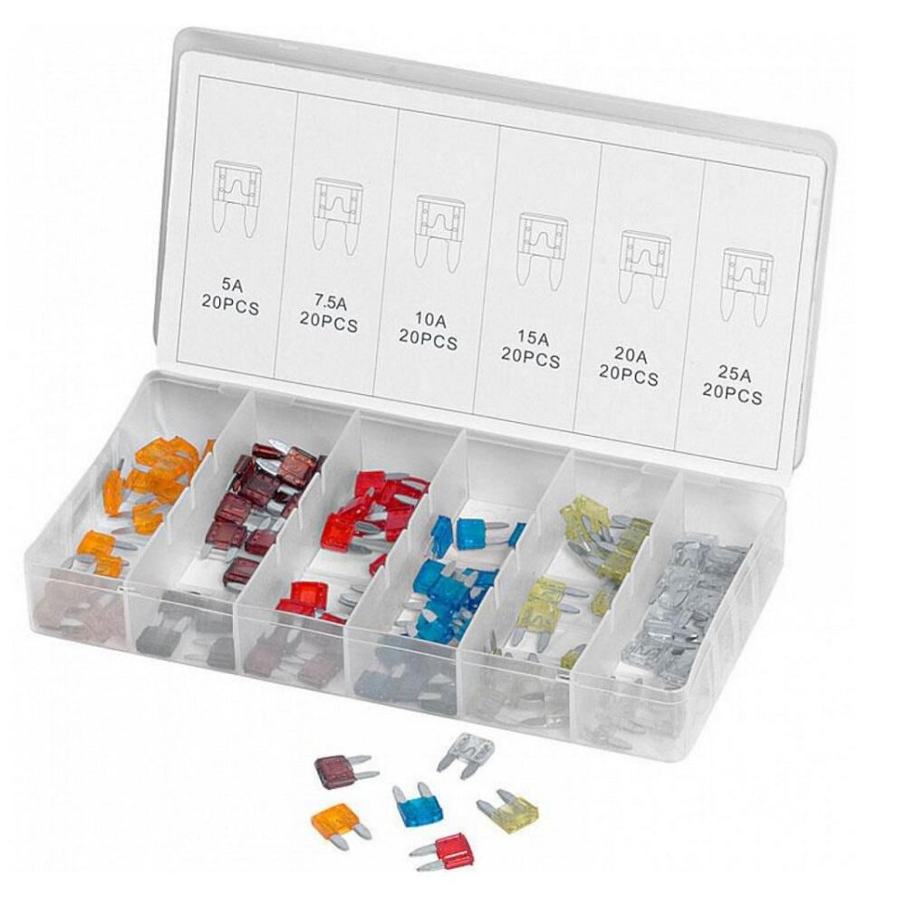 20 τεμάχια από το καθένα από τα παρακάτω: 5 αμπέρ, 7,5 αμπέρ, 10 αμπέρ, 15 αμπέρ, 20 αμπέρ και 25 αμπέρ.