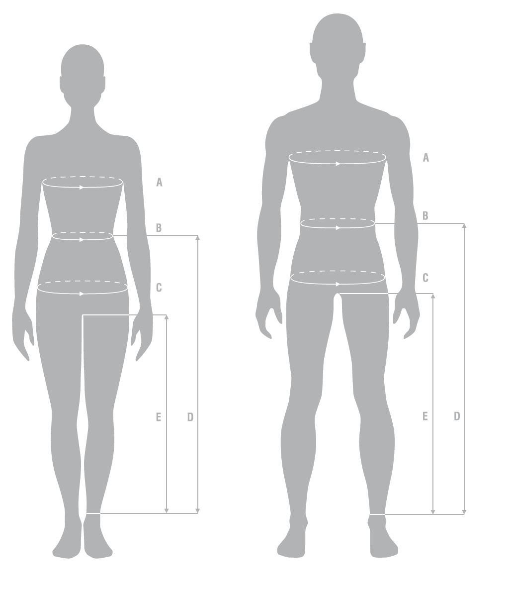 C – Hips: measure around the fullest part of your hips, keeping the tape horizontal.