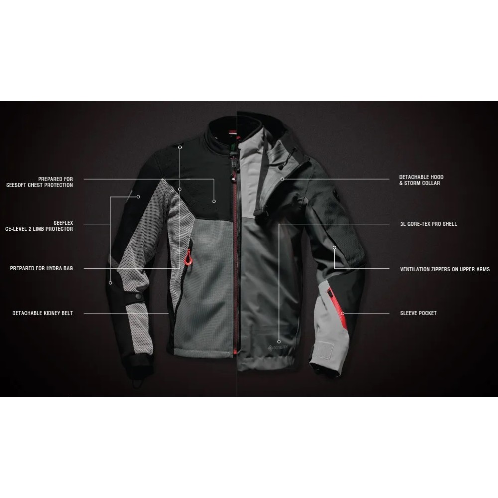 Υλικό: Εξωτερικό κέλυφος 3L GORE-TEX®, πλήρως αδιάβροχο και εξαιρετικά διαπνέον, ειδικά κατασκευασμένο για οδήγηση σε ακραίες συνθήκες.