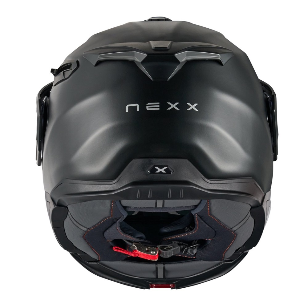 Το κράνος διαθέτει διάφανη εξωτερικ΄ή αντιχαρακτική ζελατίνα, ειδικά διαμορφωμένη ώστε να μας παρέχει εξαιρετικά μεγάλο οπτικό πεδίο (+15%),  αντηλιακή φιμε εσωτερική ζελατίνα για προστασία από την ηλιακή ακτινοβολία και αντιθαμβωτική μεμβράνη Pinlock. Επιπλέον έχει υποδοχή για ενδοεπικοινωνία NEXX - Χ.CΟΜ 3 και συμπεριλαμβάνει δυο βάσεις–κιτ για την τοποθέτηση action camera, στα πλάγια και στο επάνω μέρος.
